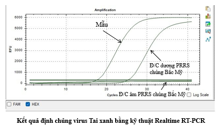 1. Hình ảnh kết quả định chủng virus Tai xanh bằng kỹ thuật Realtime RT-PCR