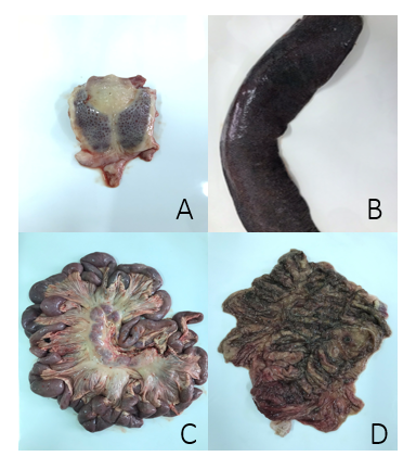 2. Một số hình ảnh bệnh tích đại thể của lợn mắc Dịch tả lợn cổ điển